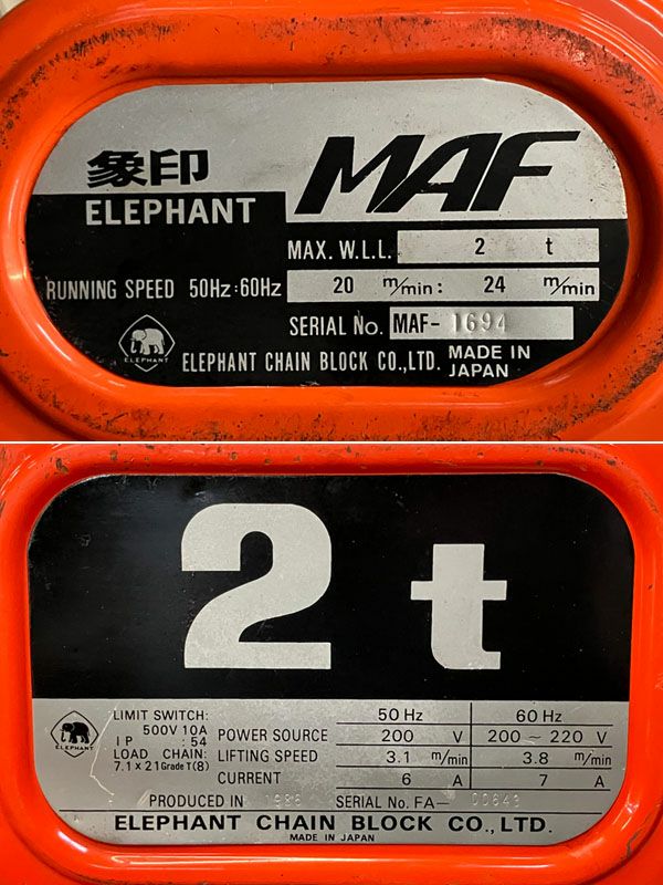 他の画像を見る 象印 490kg 3m 電動チェーンブロック 電動トロリ付 DAM-0.49 / MAF DA 大阪店 中古品(B) 販売価格 ¥ 77,000 税込 在庫切れ 詳細を見る お気に入りに登録する