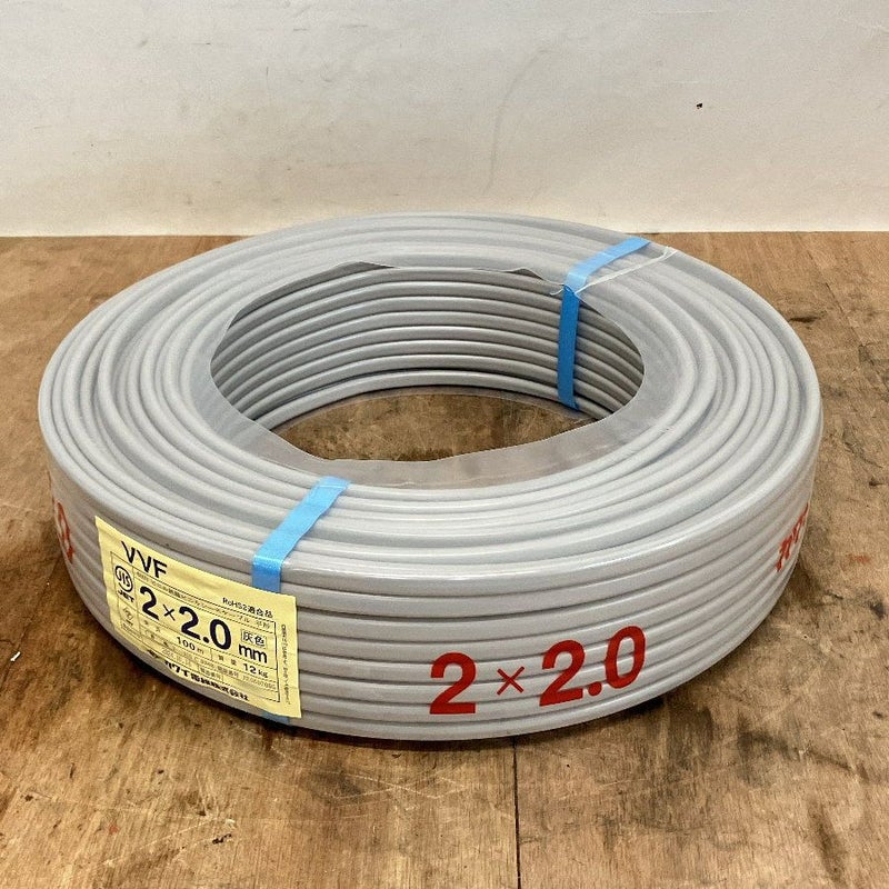 3. カワイ電線 VVF2x2.0 VVFケーブル 600Vビニル絶縁ビニルシースケーブル平形 2心×2.0mm 100m巻 灰色