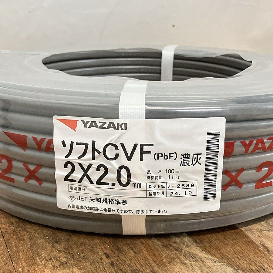 他の画像を見る カワイ電線 VVF3x2.0 VVFケーブル 600Vビニル絶縁ビニルシースケーブル平形 2.0mm 3心 100m巻 灰色 2025 愛知店 未使用品(S) 販売価格 ¥ 19,800 税込 在庫切れ 詳細を見る お気に入りに登録する