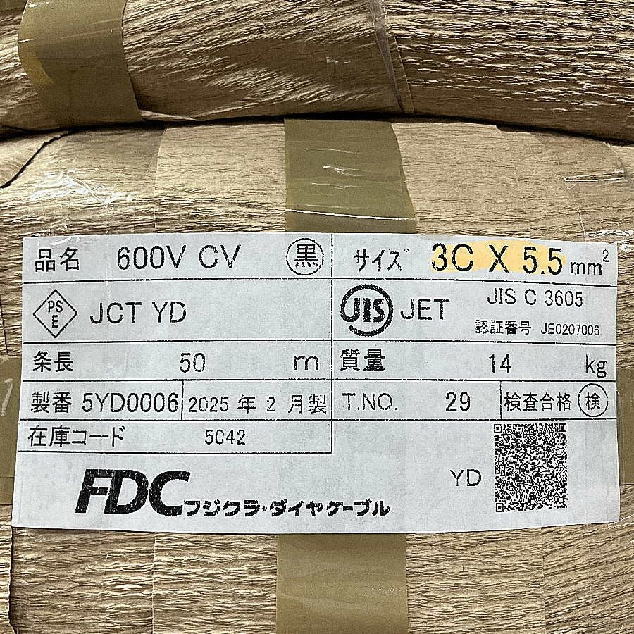 他の画像を見る FDC/フジクラ CV5.5-3C 600V 3芯×5.5 CVケーブル 架橋ポリエチレン絶縁ビニル 50m巻 シースケーブル 2025 愛知店 未使用品(S) 販売価格 ¥ 18,700 税込 在庫切れ 詳細を見る お気に入りに登録する