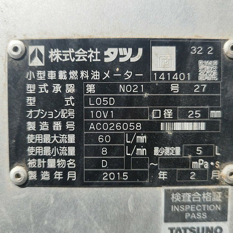 他の画像を見る TATSUNO/タツノ L035E HOME LORRY350 ホームローリー 小型 ローリータンク 320L 愛知店 中古品(B) 販売価格 ¥ 275,000 税込 在庫切れ 詳細を見る お気に入りに登録する