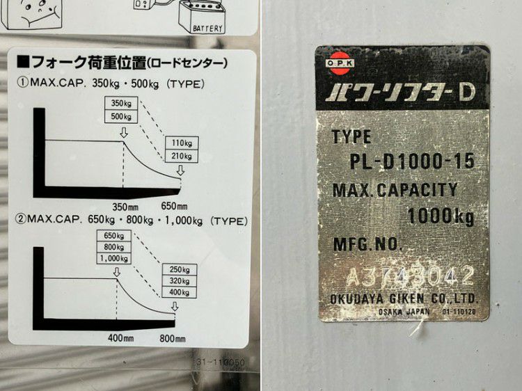 他の画像を見る 【引取限定・大阪吹田】OPK/をくだ屋技研 1000kg 1500mm バッテリー式パワーリフター PL-D1000-15 大阪店 引取限定! 中古品(C) 販売価格 ¥ 176,000 税込 カートに入れる お気に入りに登録する