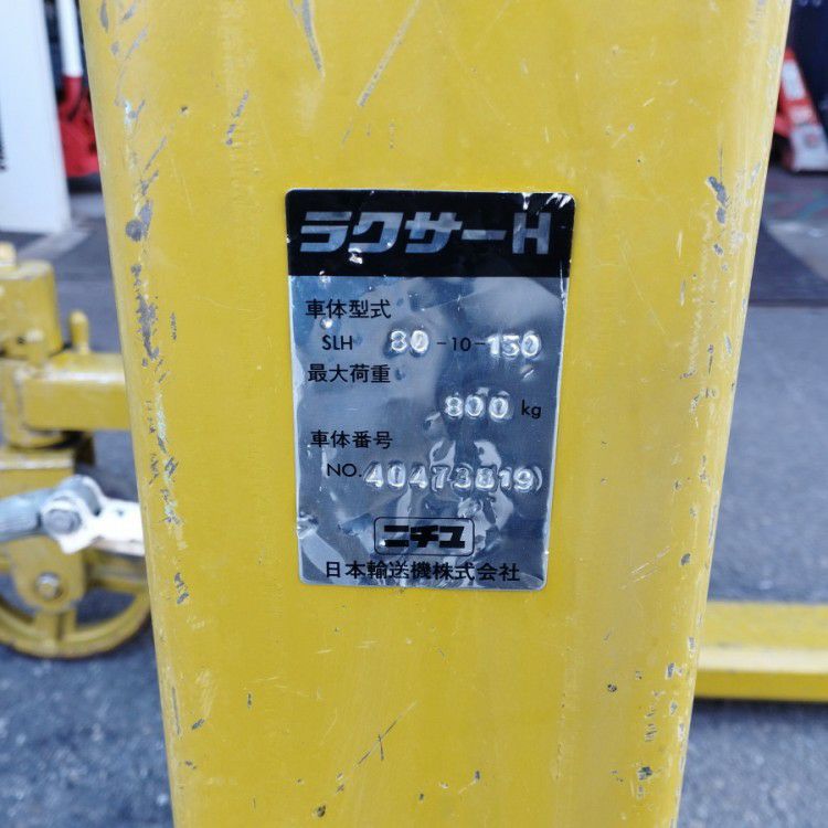 他の画像を見る [引取限定]ニチユ/日本輸送機 SLH80-10-150 800kg トラバーリフト リフター ラクサーH 愛知店 引取限定! 中古品(B) 販売価格 ¥ 88,000 税込 カートに入れる お気に入りに登録する