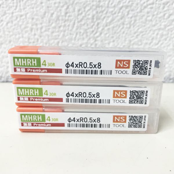 3. 【未開封品】NS TOOL/日進工具 MHRH430R φ4×R0.5×8 3本set 無限コーティングプレミアム 高硬度用4枚刃ロングネックラジアスエンドミル