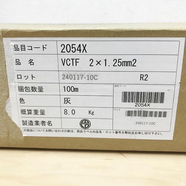 他の画像を見る 【未開封品】ONAMBA/オーナンバ VCTF ビニルキャブタイヤ丸形コード 2×1.25mm2 100m 灰 ※No.5※ 大阪店 送料無料!(沖縄離島除く) 未使用品(AA) 販売価格 ¥ 9,350 税込 カートに入れる お気に入りに登録する