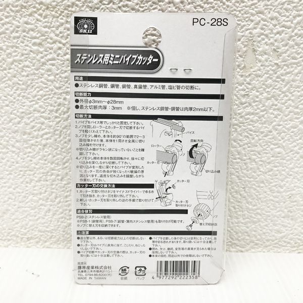 他の画像を見る SK11/藤原産業 PC-28S ステンレス用 ミニパイプカッター パイプ直径3~28mm 大阪店 送料無料!(沖縄離島除く) 未使用品(AA) 販売価格 ¥ 2,530 税込 在庫切れ 詳細を見る お気に入りに登録する