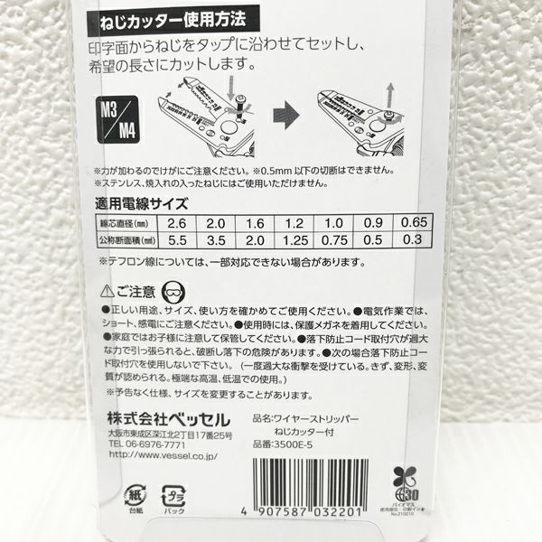 他の画像を見る VESSEL/ベッセル 3500E-5 ワイヤーストリッパー ねじカッター付 大阪店 送料無料!(沖縄離島除く) 未使用品(AA) 販売価格 ¥ 2,200 税込 在庫切れ 詳細を見る お気に入りに登録する