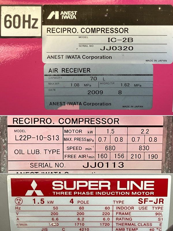 他の画像を見る 【整備済】アネスト岩田 1.5kW 2馬力 給油式レシプロコンプレッサー IC-2B 60Hz専用 / エアーコンプレッサー ●56684 大阪店 中古品(B) 販売価格 ¥ 104,500 税込 在庫切れ 詳細を見る お気に入りに登録する
