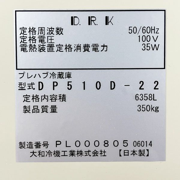 他の画像を見る 大和冷機 プレハブ冷蔵庫 1坪 ユニットセット DP510D-22 PCU-SK100ME PCU-SK100MU 2024年製 三相200V 大阪店 引取限定! 中古品(B) 販売価格 ¥ 308,000 税込 カートに入れる お気に入りに登録する