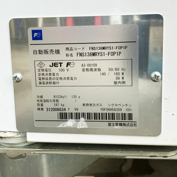 他の画像を見る 富士電機 中型汎用自動販売機 FNS136MRYS1-F0P1P 弱冷仕様 最大36セレクション 売切検知なし 2023年製 屋内仕様 大阪店 引取限定! 中古品(B) 販売価格 ¥ 330,000 税込 在庫切れ 詳細を見る お気に入りに登録する