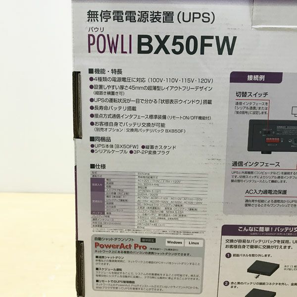 他の画像を見る 【未開封】OMRON/オムロン POWLI BX50FW 無停電電源装置 UPS 常時商用給電方式 500VA/300W 産業機器向 大阪店 送料無料!(沖縄離島除く) 未使用品(AA) 販売価格 ¥ 28,600 税込 在庫切れ 詳細を見る お気に入りに登録する