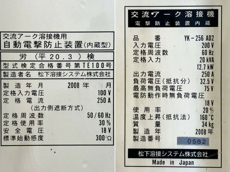 他の画像を見る 松下電器 YK-256 AD1 交流アーク溶接機 60Hz専用 単相200V 250A 1997年製 大阪店 中古品(C) 販売価格 ¥ 33,000 税込 在庫切れ 詳細を見る お気に入りに登録する