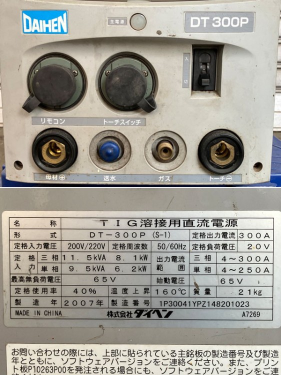 他の画像を見る DAIHEN/ダイヘン 300A 直流パルス デジタルアルゴ TIG溶接機 DT-300P 2006年製 大阪店 中古品(C) 販売価格 ¥ 198,000 税込 カートに入れる お気に入りに登録する
