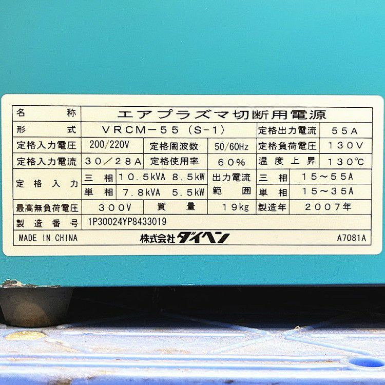 他の画像を見る DAIHEN/ダイヘン VRCM-55 エアプラズマ切断機 M-5500 プラズマカッター 愛知店 中古品(B) 販売価格 ¥ 275,000 税込 カートに入れる お気に入りに登録する