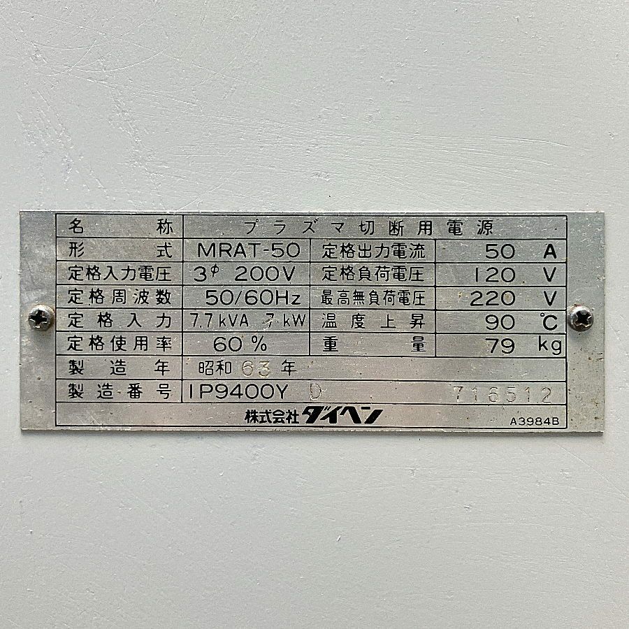 他の画像を見る DAIHEN/ダイヘン A-70 MRAT-70(S-2) 70Aエアプラズマ切断機 愛知店 中古品(A) 販売価格 ¥ 440,000 税込 在庫切れ 詳細を見る お気に入りに登録する