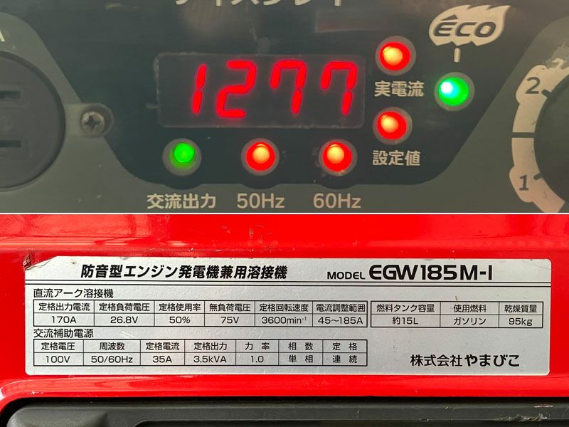 他の画像を見る 新ダイワ 185A 3.5kVA ガソリンエンジンウェルダー EGW185M-I インバータ発電機兼溶接機 大阪店 中古品(C) 販売価格 ¥ 198,000 税込 カートに入れる お気に入りに登録する