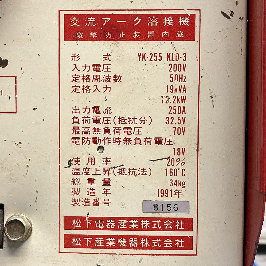他の画像を見る Panasonic/パナソニック YK-255 KLD3 250A 交流アーク溶接機 PANA-ARC/パナアーク 250KLD 愛知店 中古品(B) 販売価格 ¥ 33,000 税込 在庫切れ 詳細を見る お気に入りに登録する