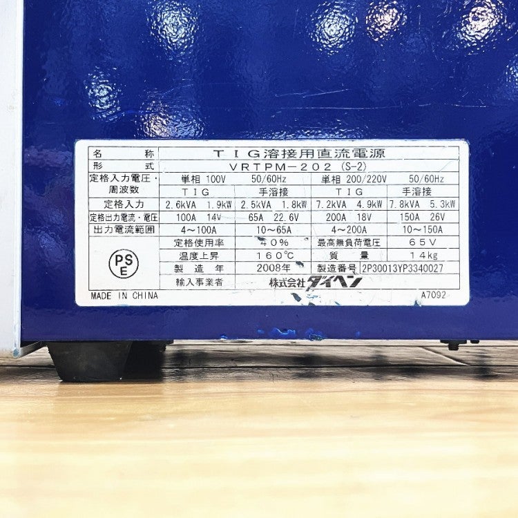 他の画像を見る DAIHEN/ダイヘン VRTPM-202 ポータブルTIG溶接機 インバータティグミニ 200PII 愛知店 中古品(B) 販売価格 ¥ 242,000 税込 カートに入れる お気に入りに登録する