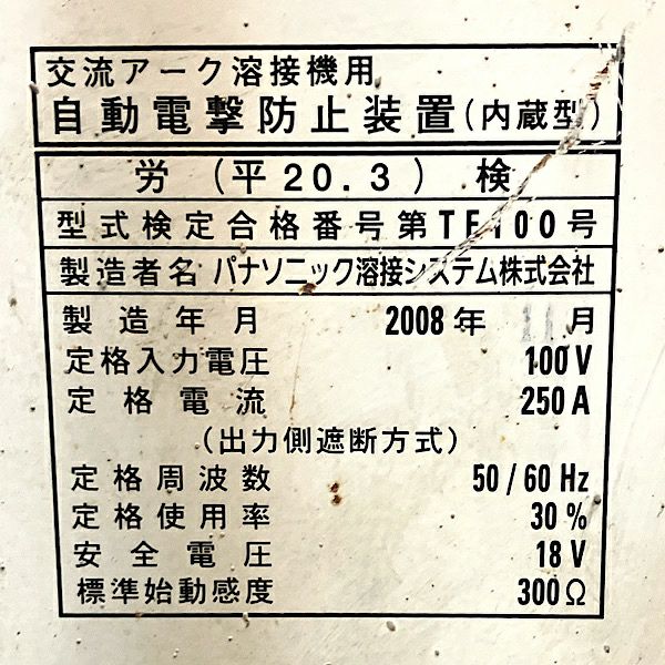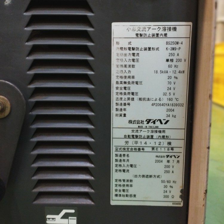 他の画像を見る 松下電器 YK-256 AD1 交流アーク溶接機 60Hz専用 単相200V 250A 1997年製 大阪店 中古品(C) 販売価格 ¥ 33,000 税込 在庫切れ 詳細を見る お気に入りに登録する